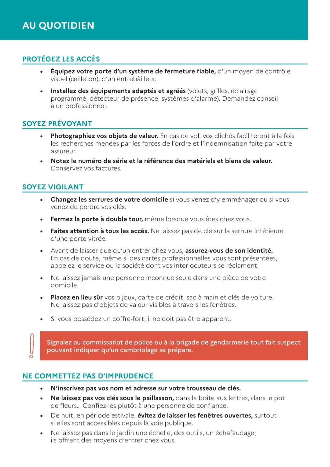 – ​Verrouillez systématiquement vos portes et fenêtres, même pour une courte absence.