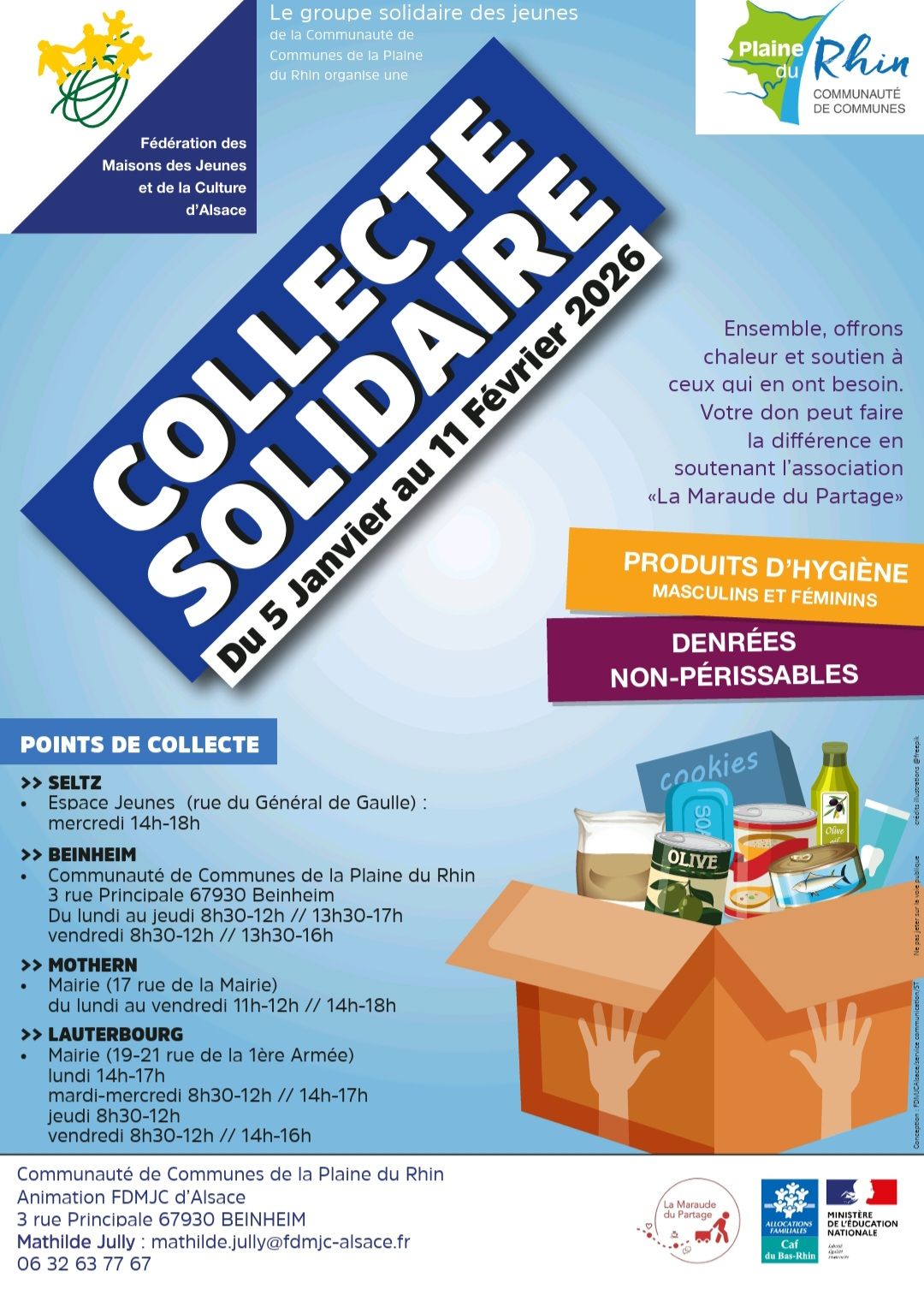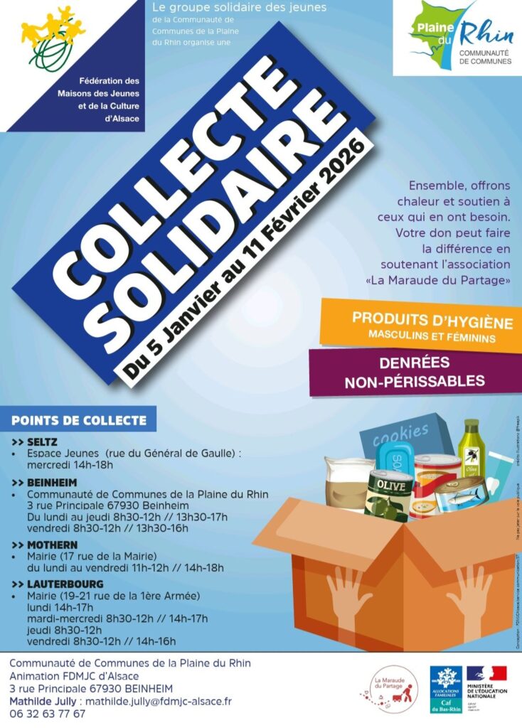 Le groupe solidaire des jeunes de la Communauté de Communes de la Plaine du Rhin organise une grande collecte solidaire du 5 janvier au 11 février 2026.