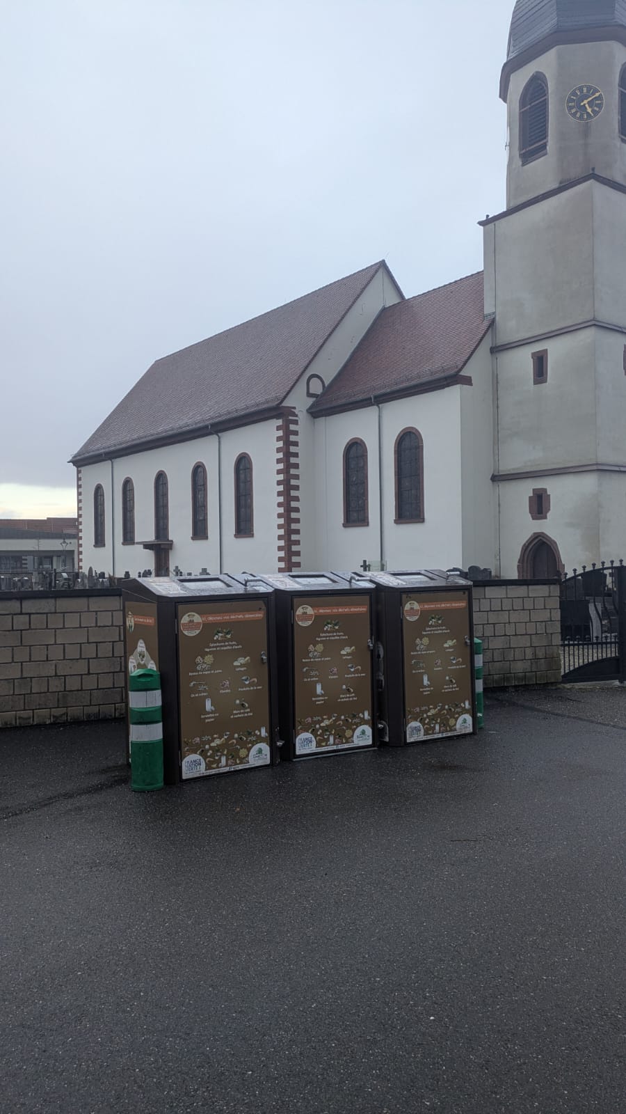 Un abri-bac biodéchet de la salle polyvalente est déplacé en renfort au niveau du cimetière.