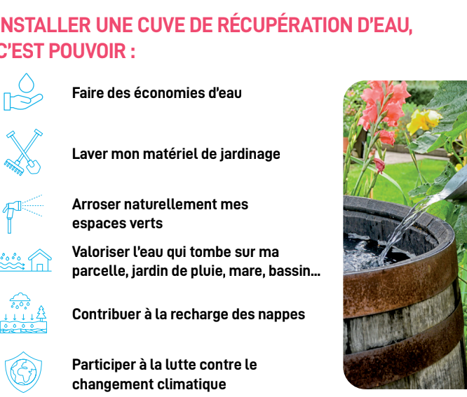 Cette opération consiste à proposer du matériel de récupération des eaux de pluie (différents modèles de cuves hors-sol + accessoires et cuves